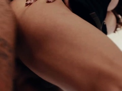 Busty shemale lets her new stepbrother lick and fuck her ass